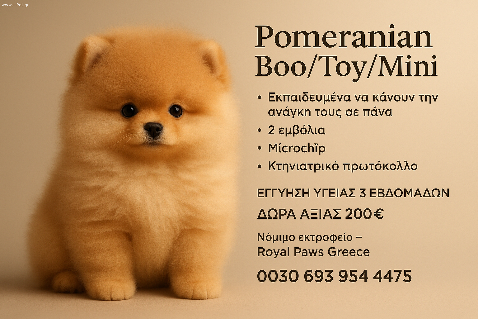 Pomeranian (Boo/Toy/Mini) – Ποιότητα κορυφής • 2 εμβόλια • Microchip • Υγεία 3 εβδομάδωνΕξαιρετικά Pomeranian Boo/Toy/Mini, με πλούσιο τρίχωμα και χαρακτηριστικό “αρκουδίσιο” πρόσωπο.