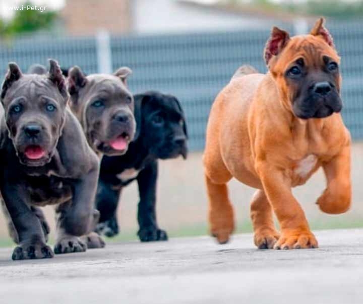 Διαθέσιμα Cane Corso – Κάνε Κόρσο κουτάβια με βιβλιάριο υγείας, εμβολιασμένα, αποπαρασιτωμένα, με πιστοποιητικό κτηνιάτρου, το τσιπάκι την εγγύηση και το Pedigree.Ως οι πρώτοι επίσημοι Έλληνες εκτροφείς Γαλλικών και Αγγλικών Μπουλντόγκ στην Ελλάδα, με κατοχυρωμένη επωνυμία και άδεια εκτροφής από τον FCI Βρυξελλών από το 1998, έχοντας δώσει έναν Multi Champion και δυο Junior Champions στον χώρο αυτό και με πολυετή εμπειρία, προτεραιότητα για εμάς εχει η πηγή προέλευσης τον κουταβιών μας. Συνεργαζόμαστε μόνο με επαγγελματίες εκτροφείς ( ΔΕΝ εισάγουμε απο puppy mills και παζάρια Βουλγαρίας και Ουγγαρίας! ) Η Εταιρία Puppies Island είναι ΝΟΜΙΜΗ, με πραγματική άδεια και η διαδικασία γίνεται όπως προβλέπεται από την ελληνική νομοθεσία. Δέν STOCK-άρουμε κουτάβια σε παράνομους χώρους προς πώληση, ούτε διαφημίζουμε τα σκυλάκια στα Social Media σαν προϊόντα. Διαθέσιμες όλες οι ράτσες κατόπιν ζήτησης με όλα τα συνοδευόμενα και την μεταφορά.