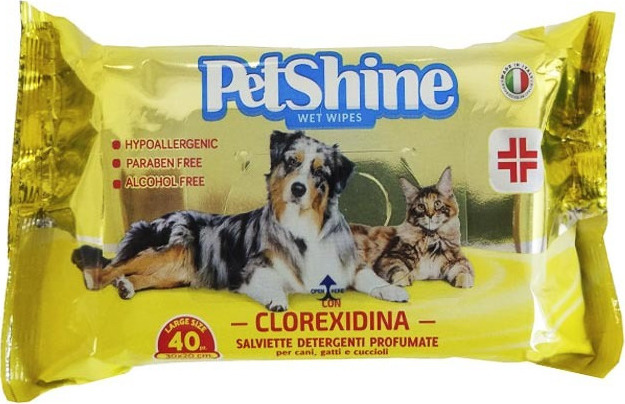 Μαντηλάκια καθαρισμού PetShine – Clorexidine, 40 τεμάχια, εμποτισμένα με την απολυμαντική ουσία χλωρεξιδίνη. Απομακρύνουν αποτελεσματικά τα βακτήρια