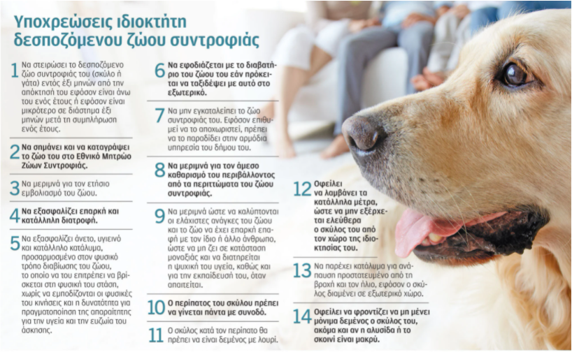 Αξίζει πάντως να επισημανθεί ότι η υποχρέωση στείρωσης για τα δεσποζόμενα ζώα συντροφιάς –για την οποία υπάρχουν κάποιες εξαιρέσεις που θα καθοριστούν με υπουργική απόφαση– προβλέπεται ότι θα ξεκινήσει να εφαρμόζεται από 1/9/2023, ενώ τα αναλογούντα διοικητικά πρόστιμα θα τεθούν σε ισχύ ένα χρόνο αργότερα, την 1/9/24.